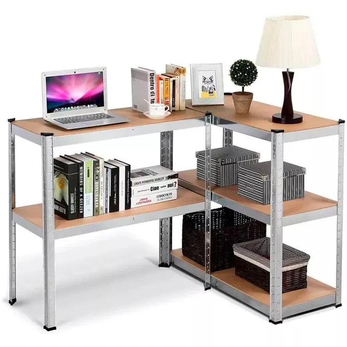 קיט עם 5 מדפים חזקים מודולריים מתכת בשילוב עץ MDF